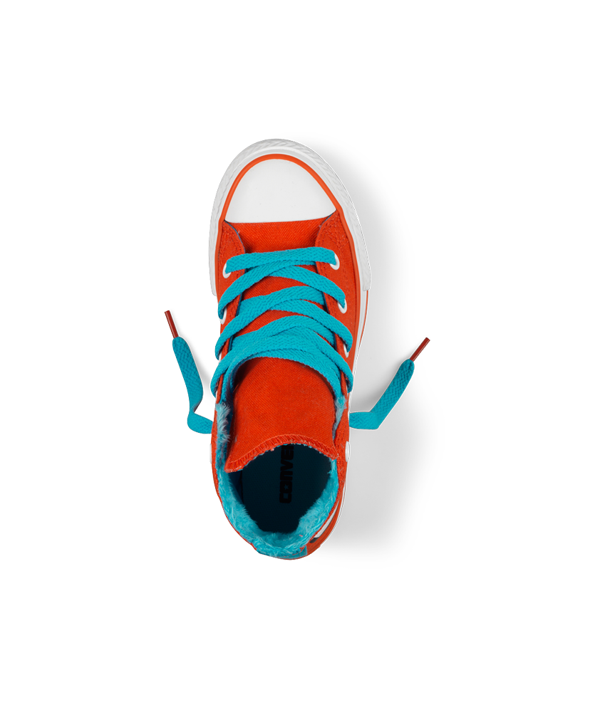 Удивительные кеды представляет фирма Converse. Это кеды оранжевого цвета с голубыми шнурками и голубым внутренним слоем. Такое необычное сочетание делает обувь привлекательной. Ее могут носить и мальчики, и девочки. Родителям тоже понравится эта модель, так как она сделана с высоким верхом, что защищает голеностопный сустав, и из хлопчатобумажной ткани, что предотвращает излишнее потение ног. Во дворе и на тренировках дети будут выделяться среди серой массы. Поэтому, родители, если желаете, чтобы ваши дети отличались от других, покупайте им такие кеды. -