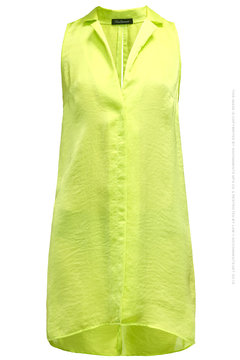 Если вы искали нечто, что сможет стать ярким акцентом и необычно оживить любой наряд, то эта длинная рубашка из желтого шелка – именно то, что нужно! Длина за бедра особенно будет оригинально смотреться, если под такую рубашечку надеть нечто еще более короткое, а если ее дополнить кокетливым пояском и расстегнуть, то такой наряд сможет свести любого. Простой крой воротника в «пиджачной» классике естественно сочетается с отсутствием рукавов, а нежность струящегося блестящего шелка и кокетливый разрез по спинке добавят образу сексапильности. Эту рубашечку носить можно куда угодно – от строгой офисной обстановки до молодежной вечеринки, главное правильно подобрать, что под нее надеть.