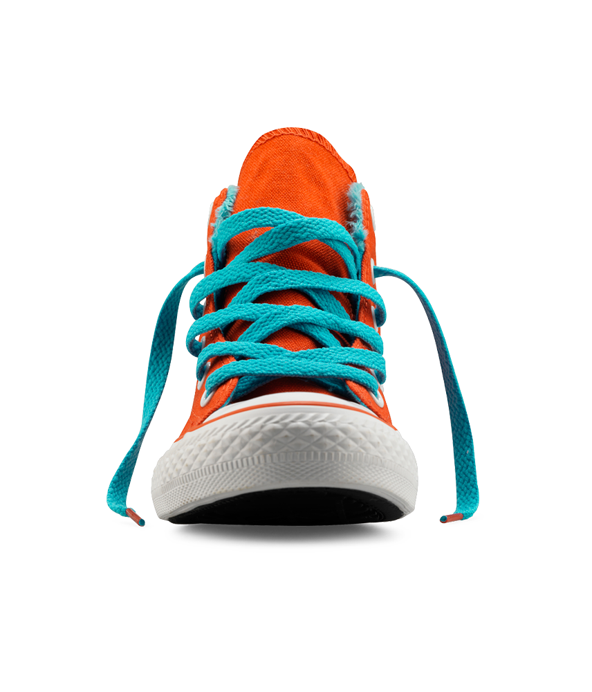 Удивительные кеды представляет фирма Converse. Это кеды оранжевого цвета с голубыми шнурками и голубым внутренним слоем. Такое необычное сочетание делает обувь привлекательной. Ее могут носить и мальчики, и девочки. Родителям тоже понравится эта модель, так как она сделана с высоким верхом, что защищает голеностопный сустав, и из хлопчатобумажной ткани, что предотвращает излишнее потение ног. Во дворе и на тренировках дети будут выделяться среди серой массы. Поэтому, родители, если желаете, чтобы ваши дети отличались от других, покупайте им такие кеды. -